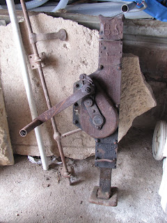 Wie niet sterk is moet slim zijn en gebruikt daarom een domme kracht. En daar bedoelen we natuurlijk geen mensen mee! Dit handige hulpmiddel heeft ervoor gezorgd dat het tonnenwegende dak met een fractie omhoog getild kon worden. Het weer was met ons op de dag van de bevrijding, die in Frankrijk op 8 mei wordt gevierd. Er kon begonnen worden om de hele laag stenen beetje bij beetje af te halen en elders tijdelijk neer te leggen. De stenen worden nl. straks deels weer voor onder de dakrand en deels voor een scheidingsmuur ergens anders binnen hergebruikt. Anderhalve dag waren ze er zoet mee en H. veranderde langzaam maar zeker in een stoffig typje...